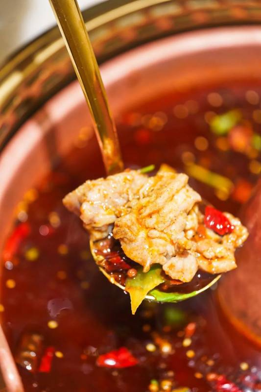 把牛舌切成片,再放在油香麻辣锅里面涮一涮,吃起来比牛羊肉更加好吃,真的是非常入味。