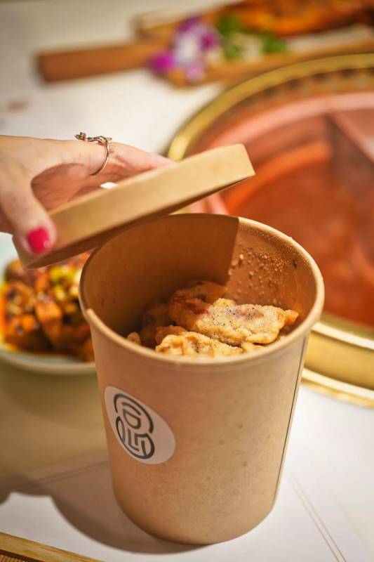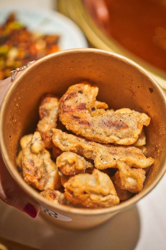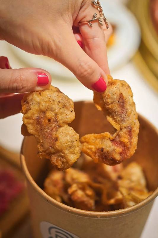 配上经过手摇而更加均匀覆蓋在酥肉上的秘制调料,让人捧著一桶一口接一口吃下去呢。