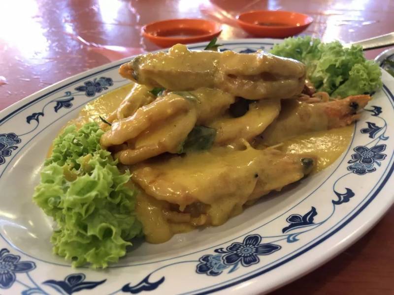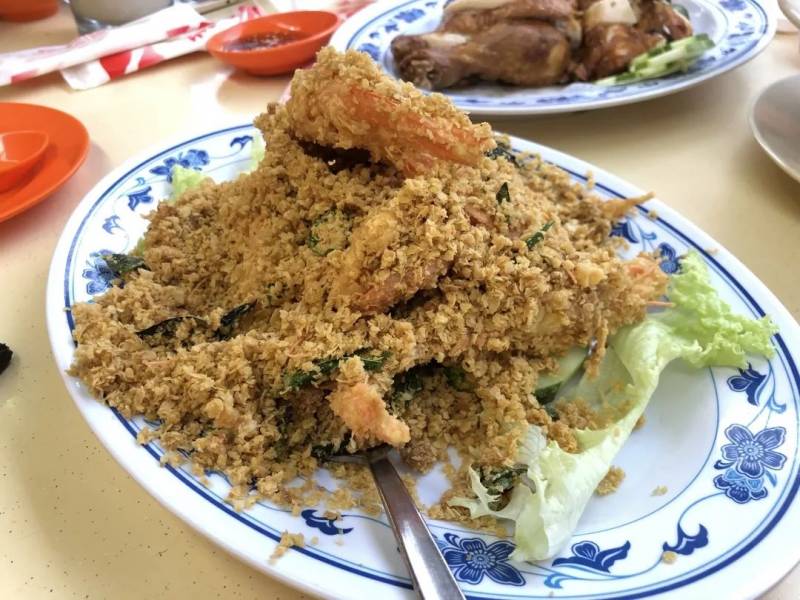 除了螃蟹,还有很多菜也超级好吃,比如另一个我非常爱的麦片虾,感觉几乎在新加坡每一家餐厅都不会踩雷。可能是天生喜欢酥脆的食物,甜甜脆脆的麦片,舀上满满一勺塞进嘴里,一口一勺,根本停不下来,虾反而成了配角。