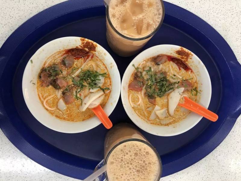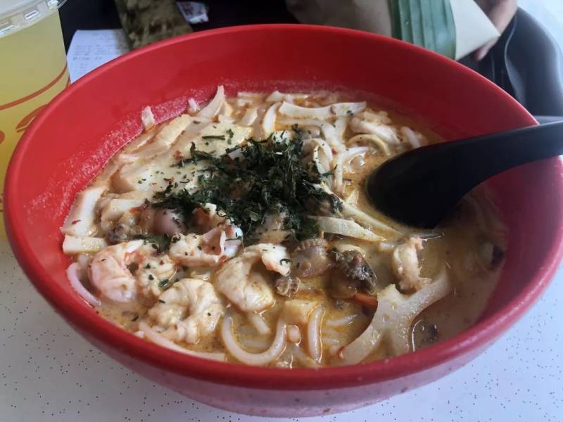 第一次吃到叻沙是在马来西亚槟城,当时就觉得这个米粉酸辣中带着海鲜味,有点点像泰式酸辣味,是我喜欢的类型。而后面到新加坡的时候,发现这里的叻沙汤汁更白,椰浆味变浓了,酸辣味也并不突出,一开始还挺不习惯。然后,后果就是啪啪打脸。