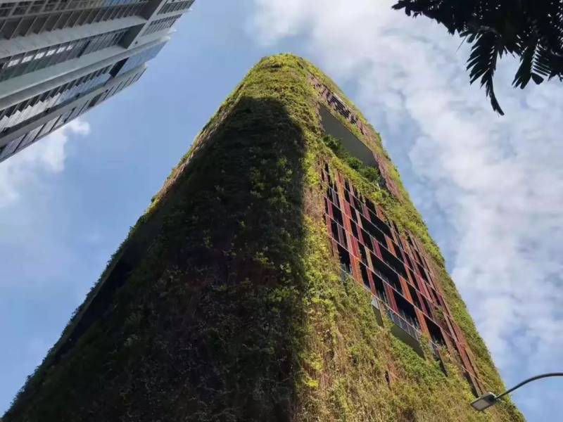 这栋建筑是位于M酒店斜对面,旁边都是很普通的高楼,当我们走着走着突然发现这个被藤科植物包裹着的高耸如云的建筑的时候,那一刹那都被震撼了。