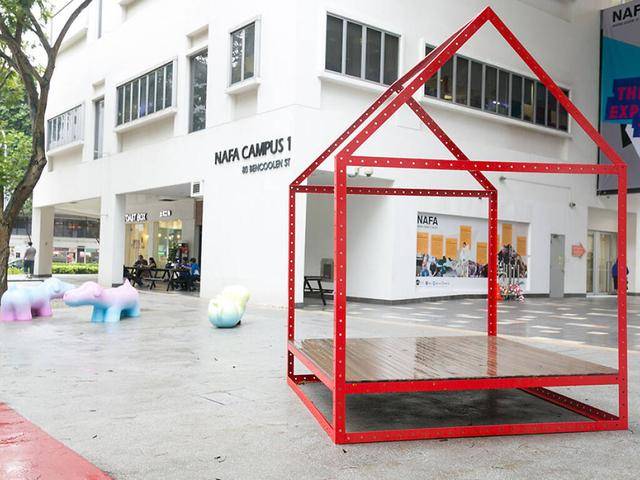 在明古连地铁站(Bencoolen or Bugis MRT Station)下车,然后前往NAFA校园,那里有由NAFA学生和校友设计的怪异长凳,正好逛累的我们可以坐下休息会。