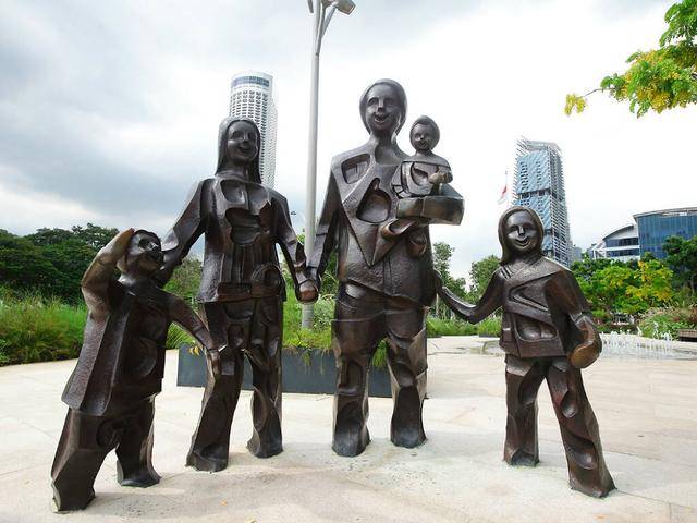 到了滨海湾艺术中心的户外广场,在那里您可以找到本地雕塑家韩世波的种子般的巨人,蔡文记的五口之家,以及林秀义对海滨一家人的寓意的诠释。