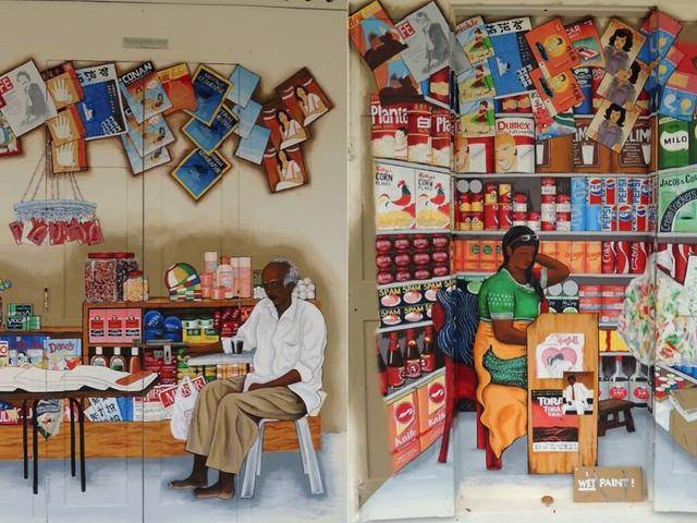 接下来,前往皇后街222号和滑铁卢街51号。哎,怎么回事?我们是来探寻艺术之旅的,怎么到了农贸市场,当我们带着疑惑走进一看,哇塞!如果不走进些看,以为是走错地方了,这画得太逼真、太立体了,简直欺骗了我们的眼睛。视角、光线、深浅运用到了极致,可以欣赏到惊人的视觉效果,这个景点值得欣赏哟!