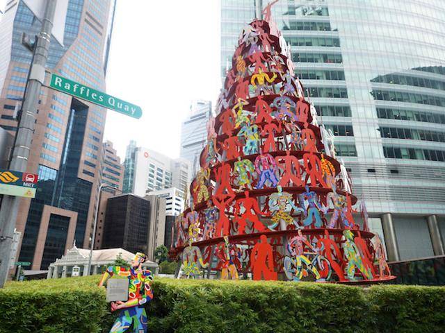 你不能错过的一个锥形万花筒雕塑,位于莱佛士旁边,是全市最高(18米)公共雕塑,这座雕塑艺术非常的有个性,由各种色调的小人组成,为了表达对创造这座充满活力的城市做出贡献的新加坡人的致敬。