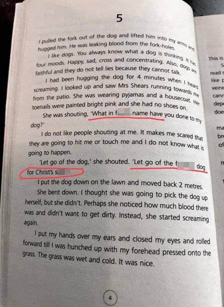 “女儿指出,为何老师禁止学生使用粗话,在他们使用这些言语时还会惩罚他们,但现在却给他们提倡这种言语的读物?”
