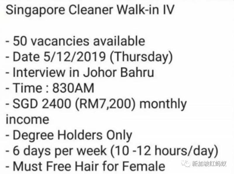 因此,开出2400元的月薪,招聘具大学学历的马国人来新加坡当清洁工,绝对不是特例。同时,无论发布该招聘的相关人士如何自圆其说,应聘的马国大学毕业生开工后,不出意外应该会发现自己真的就是一名清洁工,除此以外别无其他。