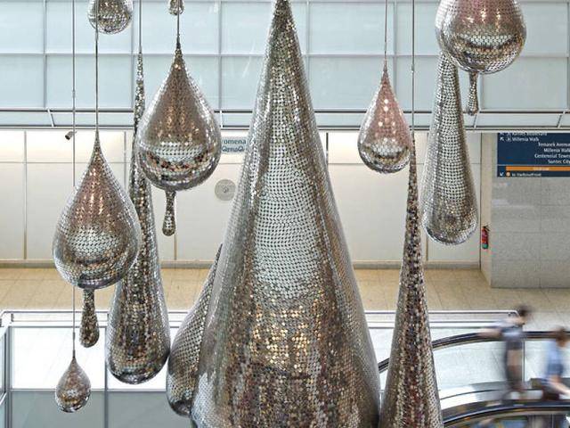 即使您急着在Promenade MRT站换乘火车,也很难错过这个雕塑景观。夺目耀眼的巨大闪光球悬挂在高空中,远远望去真像科幻片里的场景,非常的壮观美丽。