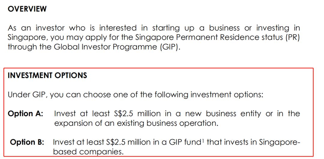 方案 B:投资至少 250 万新币到新加坡政府指定的基金公司。
