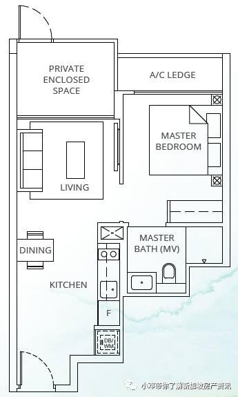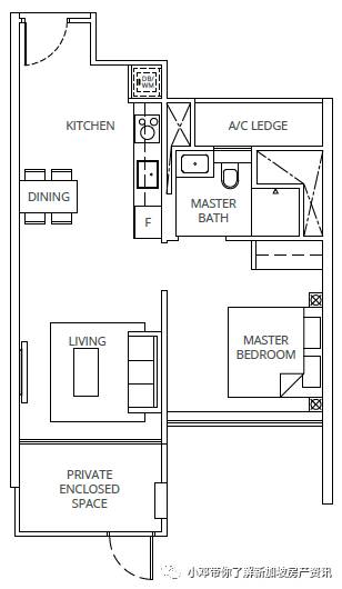 A3-P户型 1室 592平方英尺/65平方米