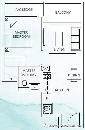 A2户型 1室 474平方英尺/44平方米