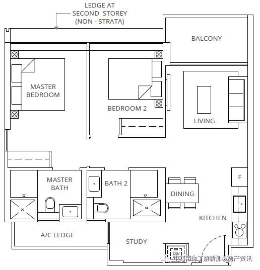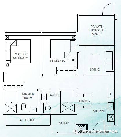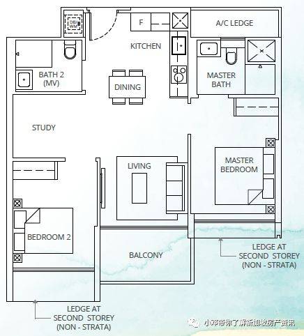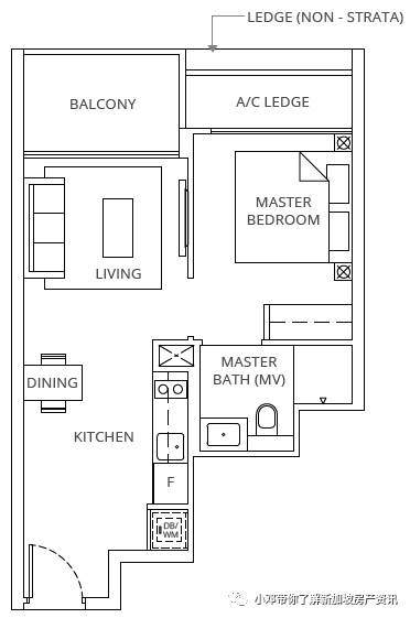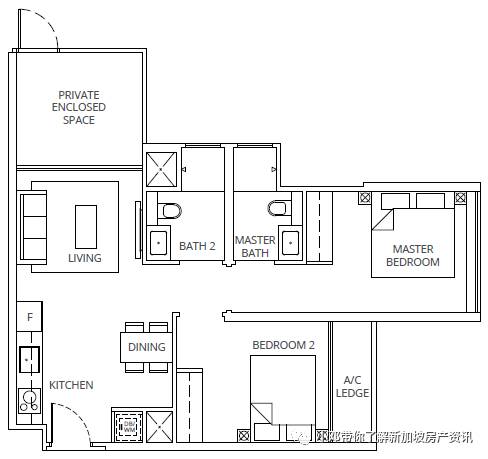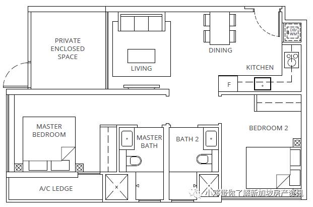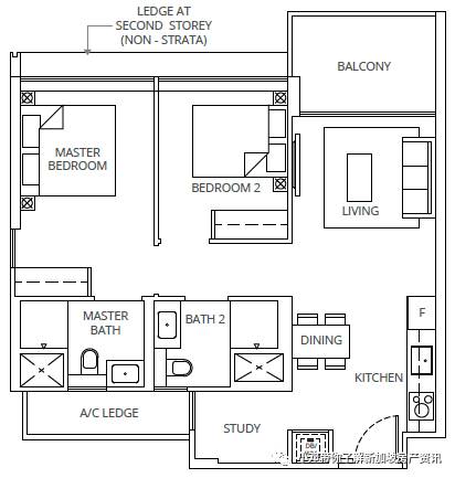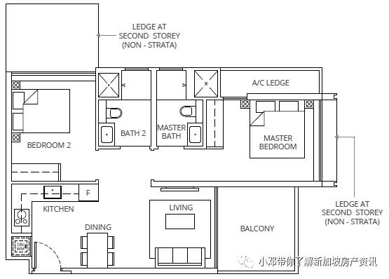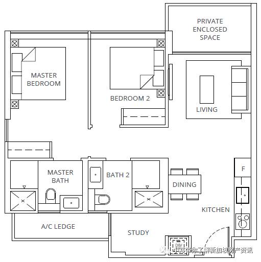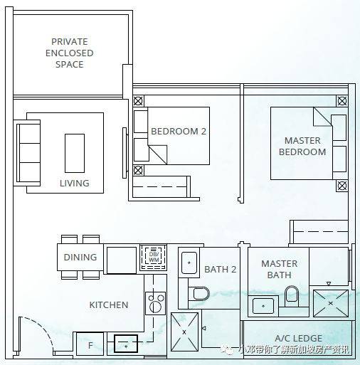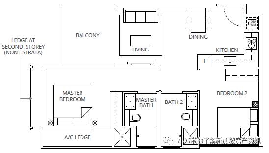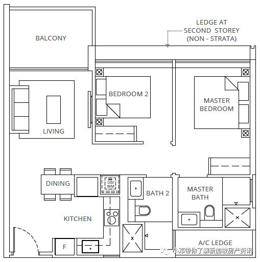 B2户型 2室 764平方英尺/71平方米