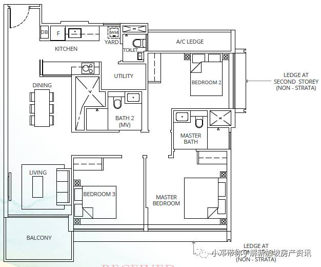 C2户型 3室 1098平方英尺/102平方米