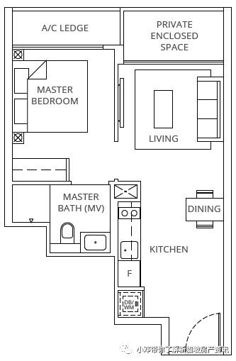A1-P户型 1室 484平方英尺/45平方米