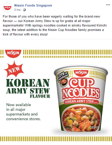鼎鼎大名的方便面品牌Nissin今天在FB上放出消息