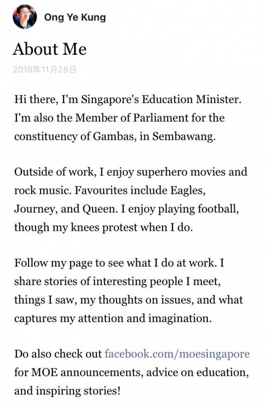 对于如此接地气的王部长,你还可以到他的FB主页关注他的动态哦,你会发现这位部长的自我简介也是很可爱呢。