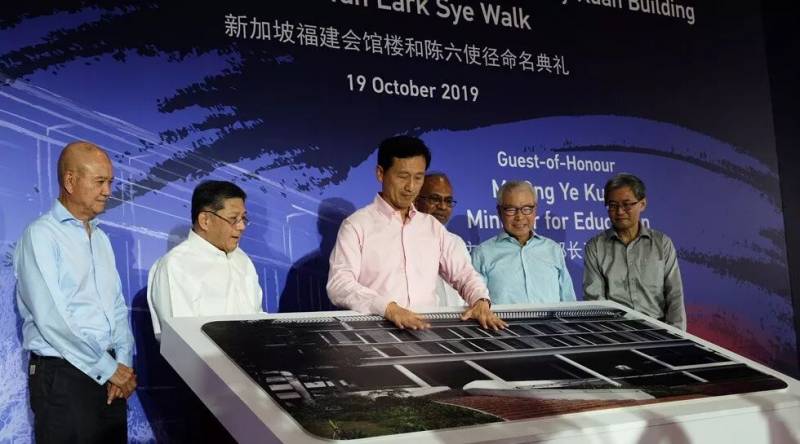 2019年10月19日下午四点半,对新加坡福建会馆楼和陈六使径命名典礼在南洋理工大学人文与社会科学学院举行,教育部长王乙康主持揭幕。