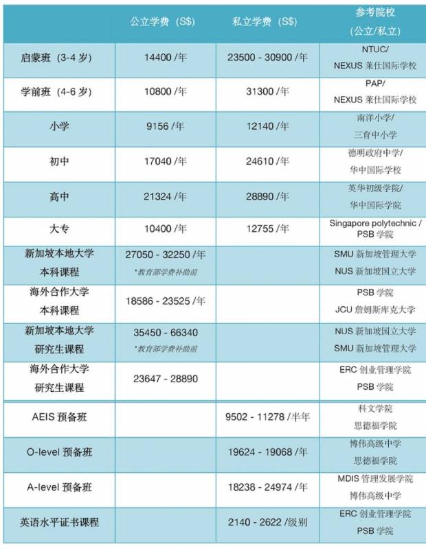 资料来源:新加坡教育部官网 / 各参考院校官方网站https://www.moe.gov.sg/admissions/international-students/general-info