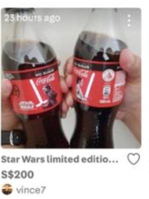 凡是限量就会被炒,目前,电商平台Carousell上已经有数十人开始售卖这个限量版星战可口可乐,