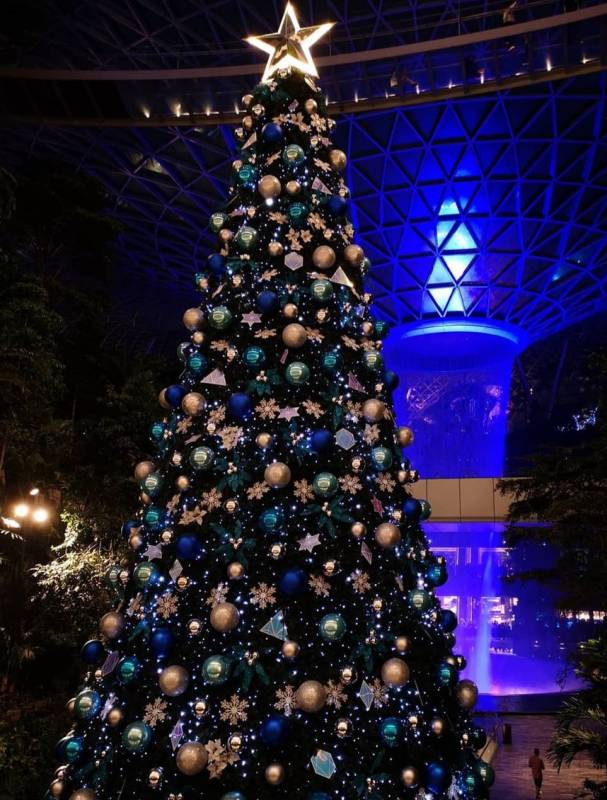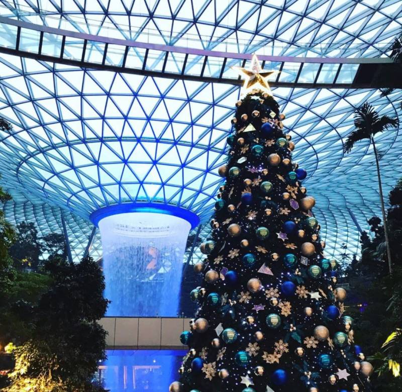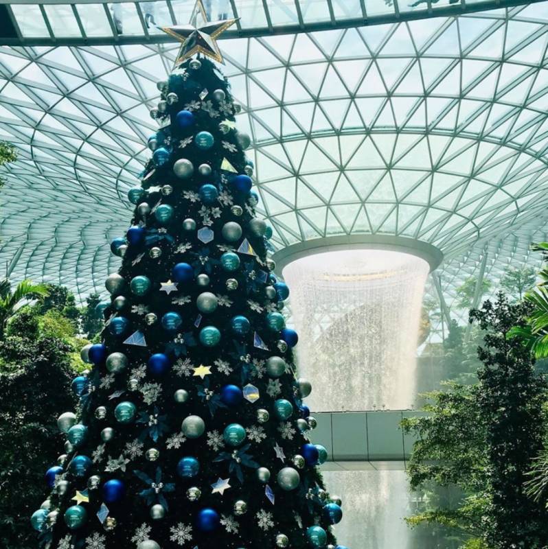 在全世界最大的室内瀑布前与圣诞树打卡合照,估计是本年度最浪漫的事情之一。