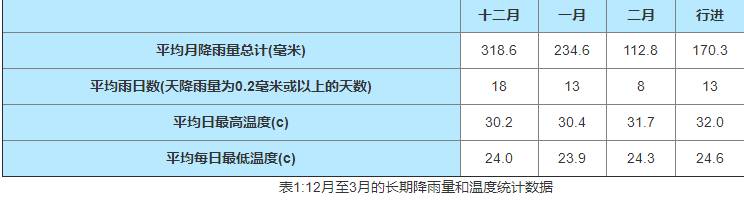 而长期降雨量与温度统计数据,十二月降雨天数要达到18天。