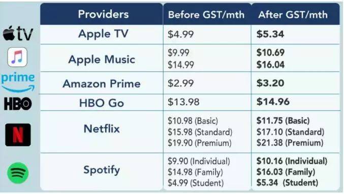 就是在新加坡常用的流媒体服务Netflix 和 Apple TV+等,他们要开始交消费税了...