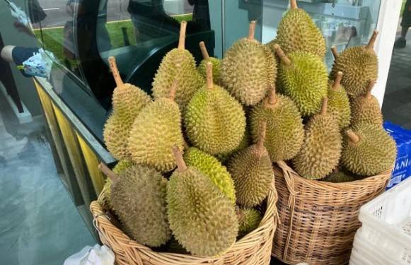 榴梿档Durian Kaki今天(14日)傍晚6点在位于马里士他路的店面,售卖800公斤的猫山王榴梿,
