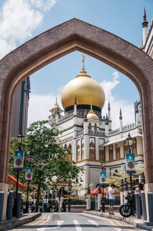 苏丹清真寺是甘榜格南(Kampong Glam)的核心建筑,建于1824年,是新加坡的第一位苏丹或当地马来统治者。原始清真寺持续了大约一百年,但在原始形式失修后于1932年以目前的形式重建。