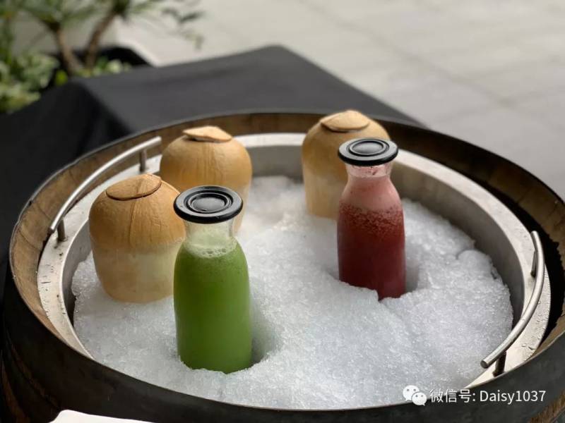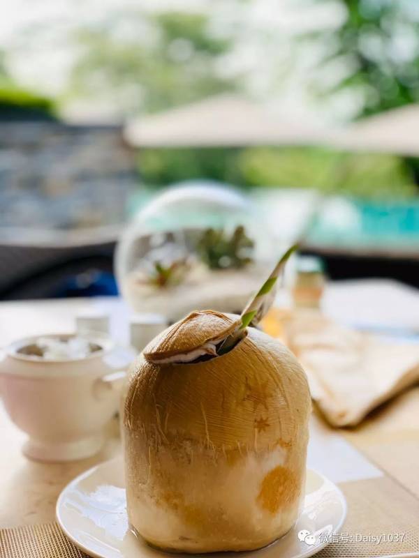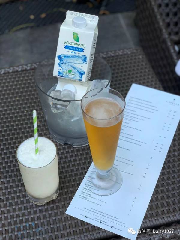 酒店的无边泳池有两层,人也就显得不多了,随便玩。刚坐下就送来纯净水,奶昔很好喝