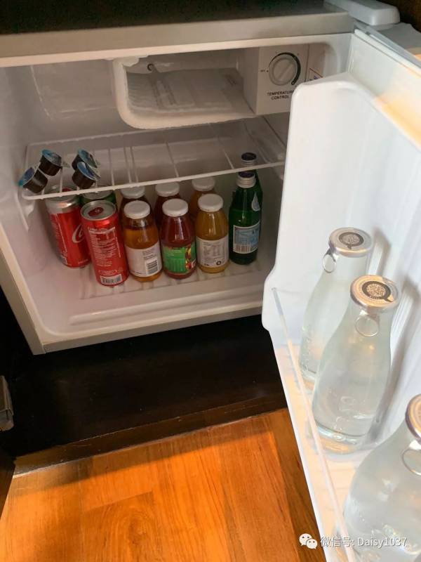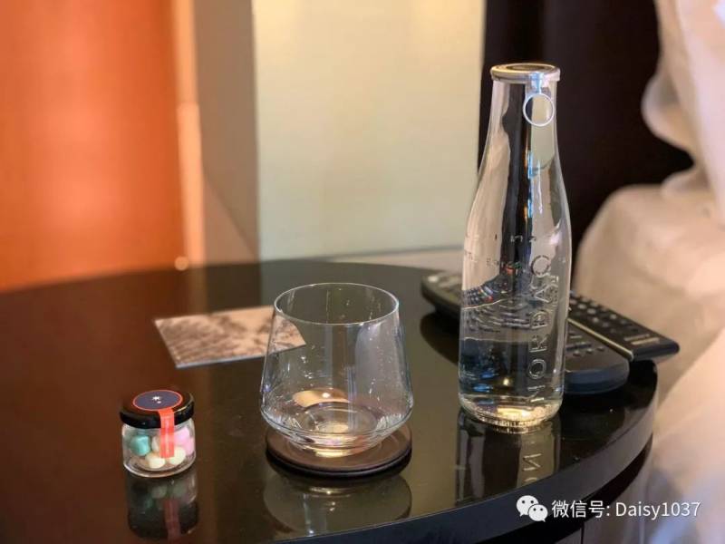 mini吧随便喝,管家会及时补足;床头的小糖果看着就很喜欢