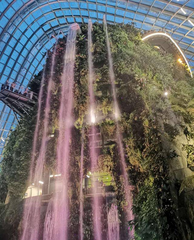 云雾林,就是一个让你有“腾云驾雾”感觉的巨大冷室。一进门就能看到中央有座35米高的巨大山体,覆蓋了茂密的植物,世界上最大的室内人造瀑布(30米高)从山顶倾泻而下。颇有气势。