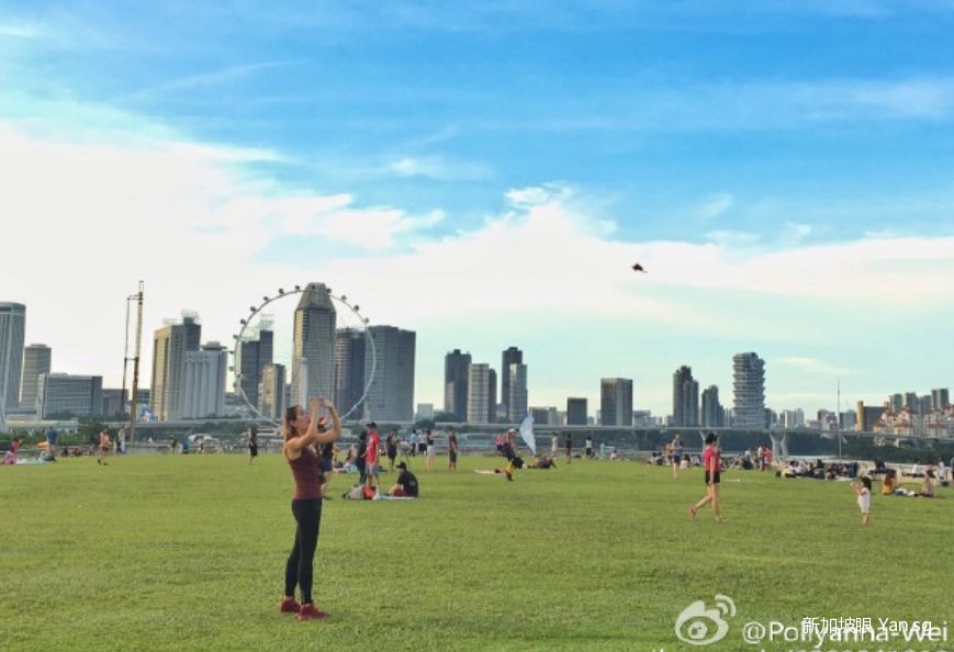 滨海湾花园就在金沙的对面,不过,不是公园里的每个地方都能看到烟花,毕竟树很多啊…….所以,大家要记得找像图中这种空地哦~