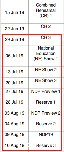 每周的庆典彩排预演在晚上8点到8点20分都会放烟花,下面贴出今年国庆预演的时间表: