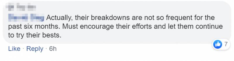 “责怪SMRT也无济于事,所有的电器和设备都有会坏掉的时候,就算是持续监测也会有问题,大家耐心点哦!!”