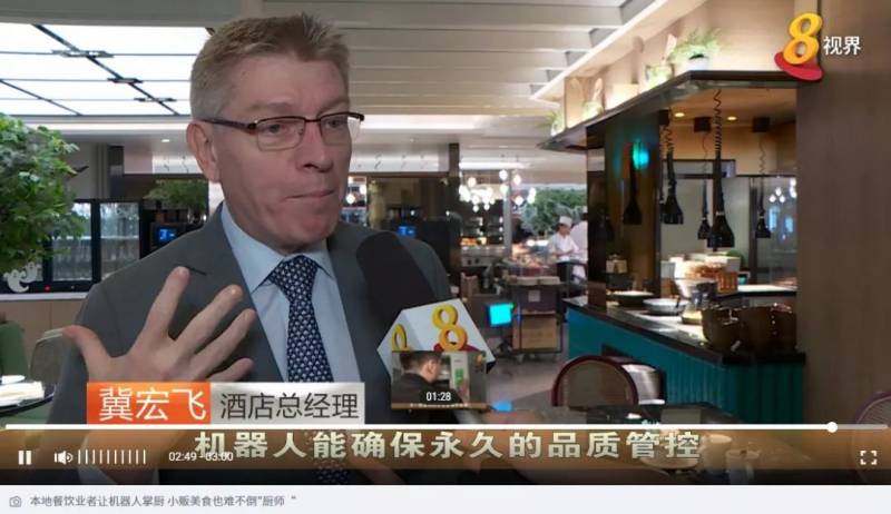 餐厅常务董事余眀利说:“如果要跟普通的小贩比较,可能那些炒了几十年的,我们一定是不可能跟他们比的。但是机器人做出来的东西不一定是那种冷冻食物不好吃。机器人是我们人控制的,然后我们人去开发的。其实机器人就是无限的。”