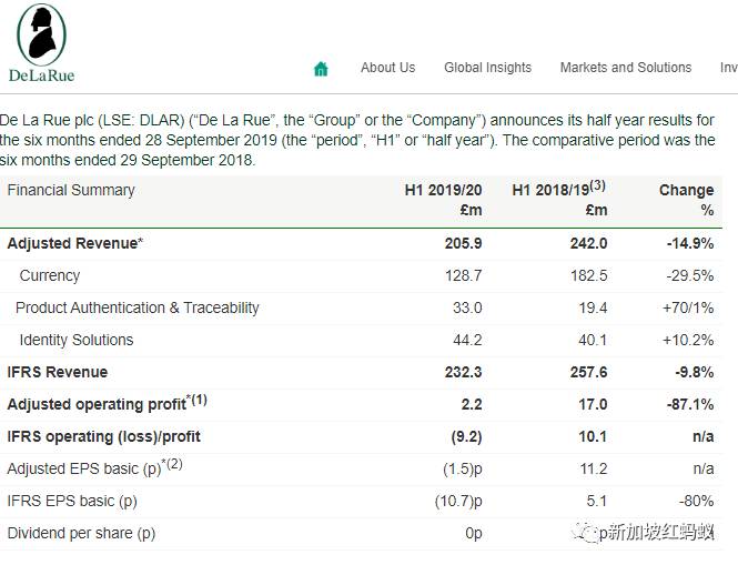 (De La Rue 2019/20财年半年报)