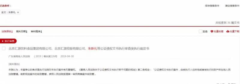 此外,记者搜索中国裁判文书网发现,以朱新礼为关键词搜索,共涉及10条裁判文书,发布日期为2019年2月至11月,查询到的公证债权超过13亿。