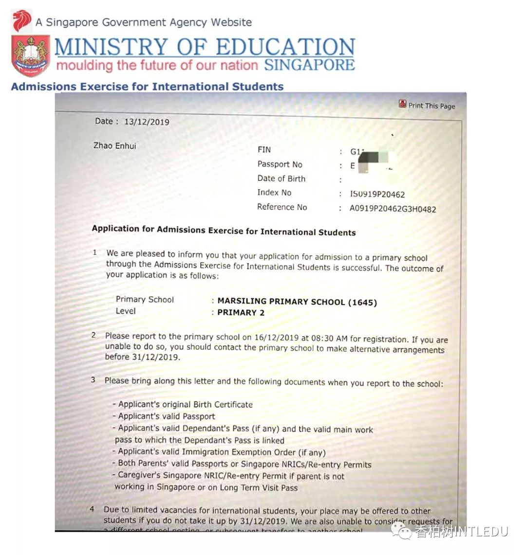 被成功录取的考生在学校报到时将会从校方收到一封学生准证申请注册函(SOLAR Registration Acknowledgement Letter)。