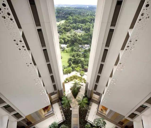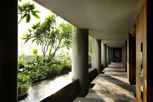 每个居民都可以从电梯到家门口的这段路上穿过或俯瞰花园