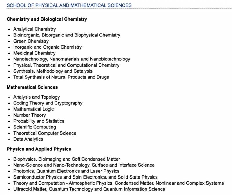 SPMS学院提供的硕士项目有研究型化学硕士项目(M. Sc. Chemistry)、分析学硕士项目(M. Sc. Analytics)和金融科技硕士项目(M. Sc. Financial Technology)。
