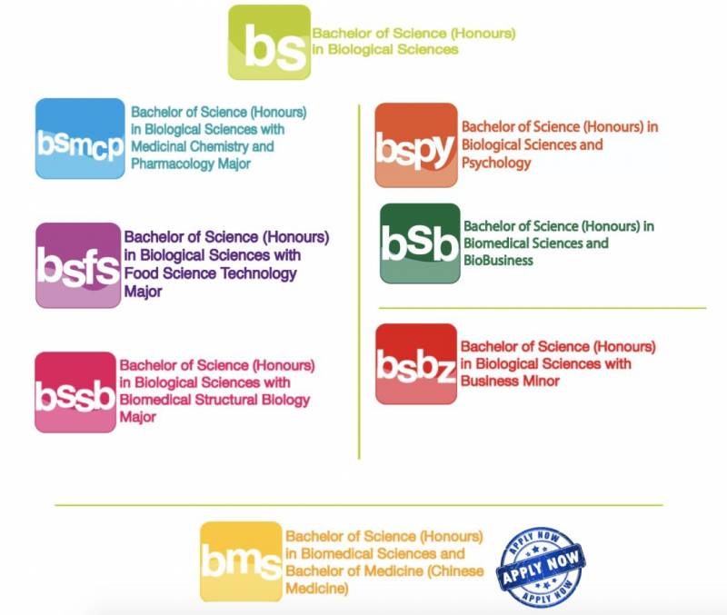 生物科学院(SBS)的本科专业有药物化学和药理学、食品科学、结构生物医学、生物科学及心理学、生物医学科学及生物商学、生物医学和中医学双学位。生物医学和中医学双学位课程是与北京中医药大学联办。毕业生将获颁南大生物医学理学士荣誉学位以及北京中医药大学的医学中医专业学士学位。
