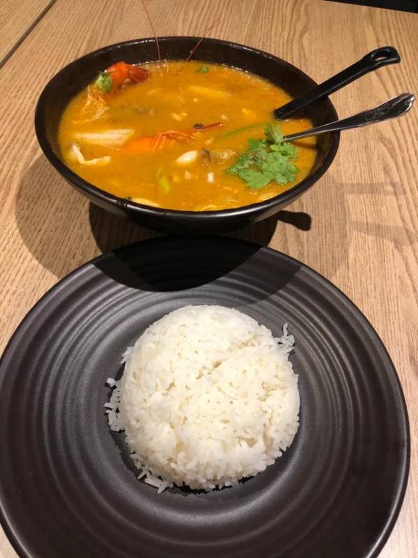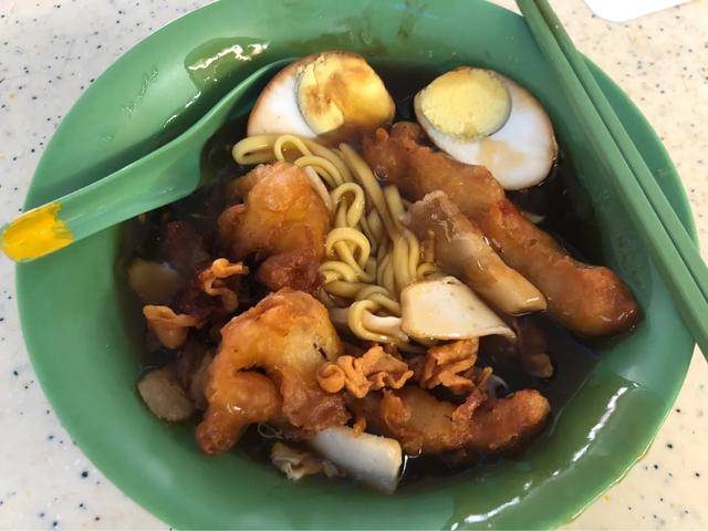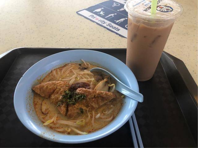 但最后的这个叫叻沙(Laksa)感觉还挺合我口味的,这是我到新后第二天第一次尝试当地的美食,上面那些就真是一言难尽了。这些食品基本上在食阁便可以找到,大概3-4新元就可以了,如果想吃高档一点就要10新元以上了。下图的餐值11.8新元,就2只大虾加几片大白菜和鱿鱼圈,吃了就后悔系列!