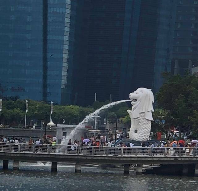 首站鱼尾狮公园(Merlion park),其实就是延著大海建设的一个石象喷泉,这里是世界各地游客首当其中的打卡圣地,对面就是远近驰名的滨海湾金沙酒店(Tower),设计十分独特,顶着一艘游轮,集观光、购物、娱乐于一体的综合性大型建筑。