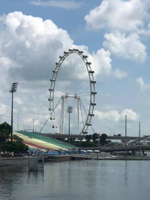 那天去的时候下着雨,图片拍的有点暗,效果不是很好!现场看的话景色还是一流的!延著路一直走就会到新加坡另一个地标之一新加坡摩天观景轮(Singapore Flyer)
