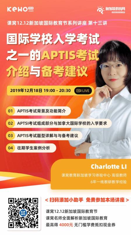 相信在本次的讲座中,通过李老师的详细介绍,各位家长和同学们一定会对APTIS普思考试有一个全面地了解!