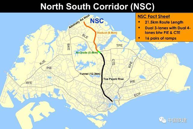 新加坡南北交通廊道项目全长21.5公里,包含8.8公里高架桥、12.3公里隧道和部分地面道路,旨在缓解日益严重的交通压力。 本项目位于新加坡城市中北部,采用设计施工总承包模式,包含3.3公里高架桥、长度约为1公里的匝道桥及附属道路。