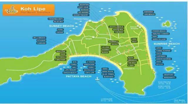 芭提雅海滩(此芭提雅非看人妖的芭提雅):是丽贝岛人最多最热闹的沙滩。沙质最好,海水最清澈,酒店最多,离步行街最近,最热闹。但是一个大湾,视野不够开阔,看不到日出日落。黄昏退潮时,在沙滩上可以捡到很多珊瑚石和贝壳,还能看到很多小生物。晚上的沙滩非常热闹,推荐大家在这里边品尝美食边欣赏沙滩美景,感觉很棒。