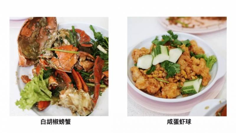 招牌菜白胡椒螃蟹肉厚多汁,微麻辣在舌尖转瞬即逝带出螃蟹的鲜味;除此之外,硕大的虾球裹着咸口的蛋黄酱,炸得粒粒金黄,配上冰饮就是夜宵最佳搭档。