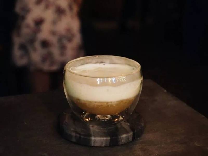 在酒吧喝到奶盖是一种什么体验?招牌HOT+COLD给你答案,这款特调的奶盖是浓郁的椰子和巧克力味,可能比奶茶店的奶盖还厚还细腻呢,奶盖下面是菠萝薰衣草酒,听起来就很梦幻。