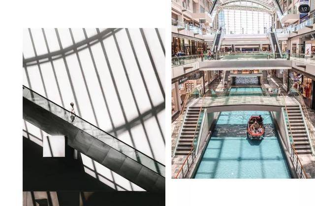 除了好逛好买,这里的购物环境也十分出色。玻璃天幕和室内运河,不仅有着室外的开阔感,也能同时享受室内的舒适清凉。
